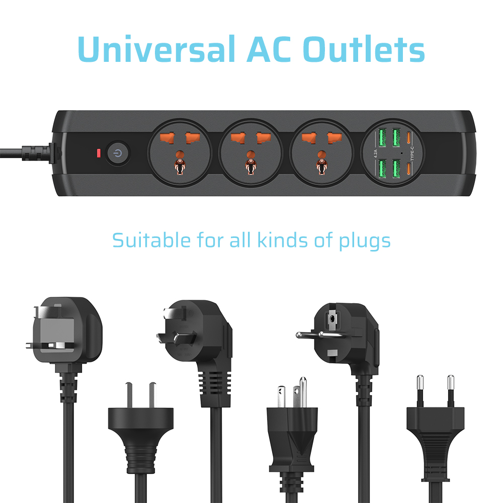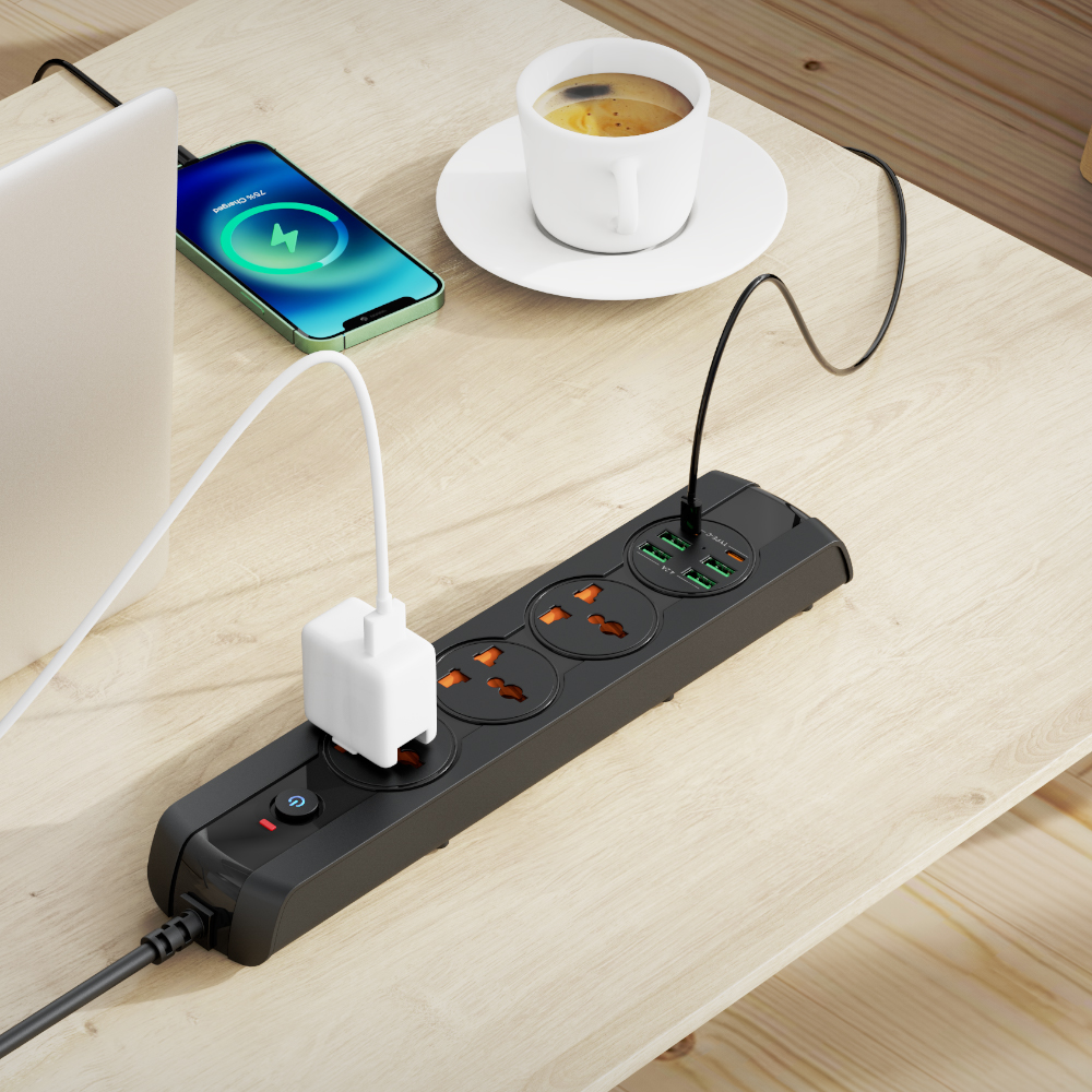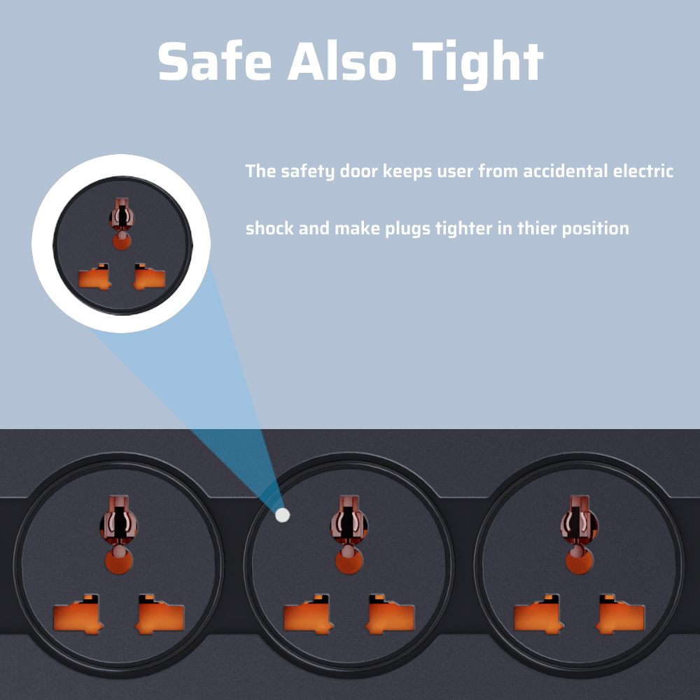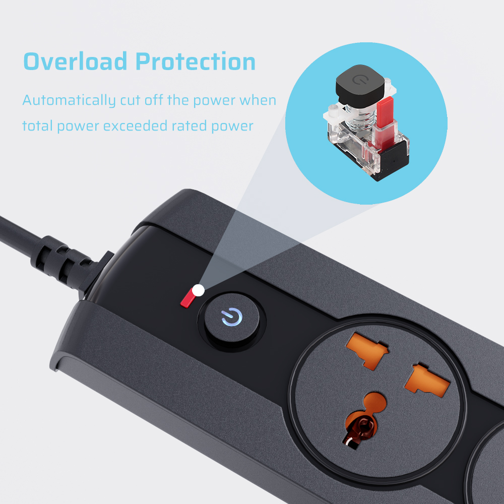 3 AC Sockets and 6 USB Ports–The 6 USB ports will automatically detect devices and deliver the optimal charging current, ensuring the fast and safest charging while protecting them from damage and data loss thanks to unique AUTO-ID technology.
