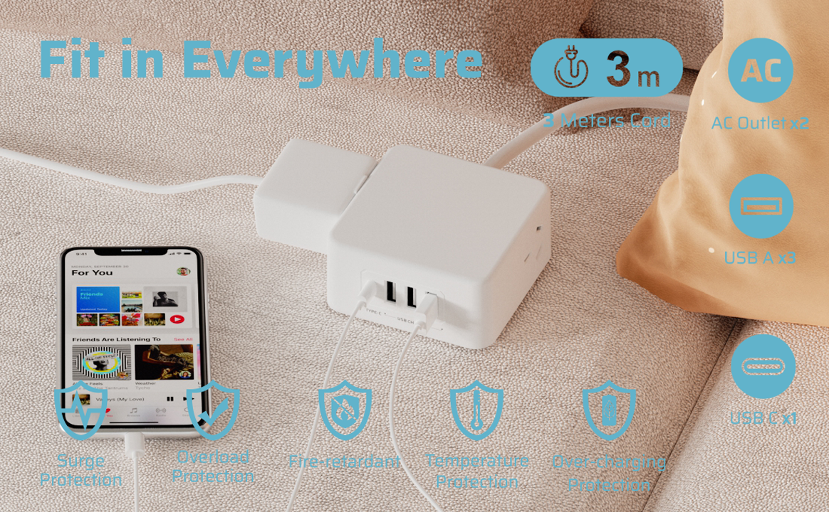 The 85mm x 85mm size makes the power board compact and suitable for applications where space is limited. It allows for efficient use of space, making it ideal for small areas such as offices, apartments, or travel purposes.