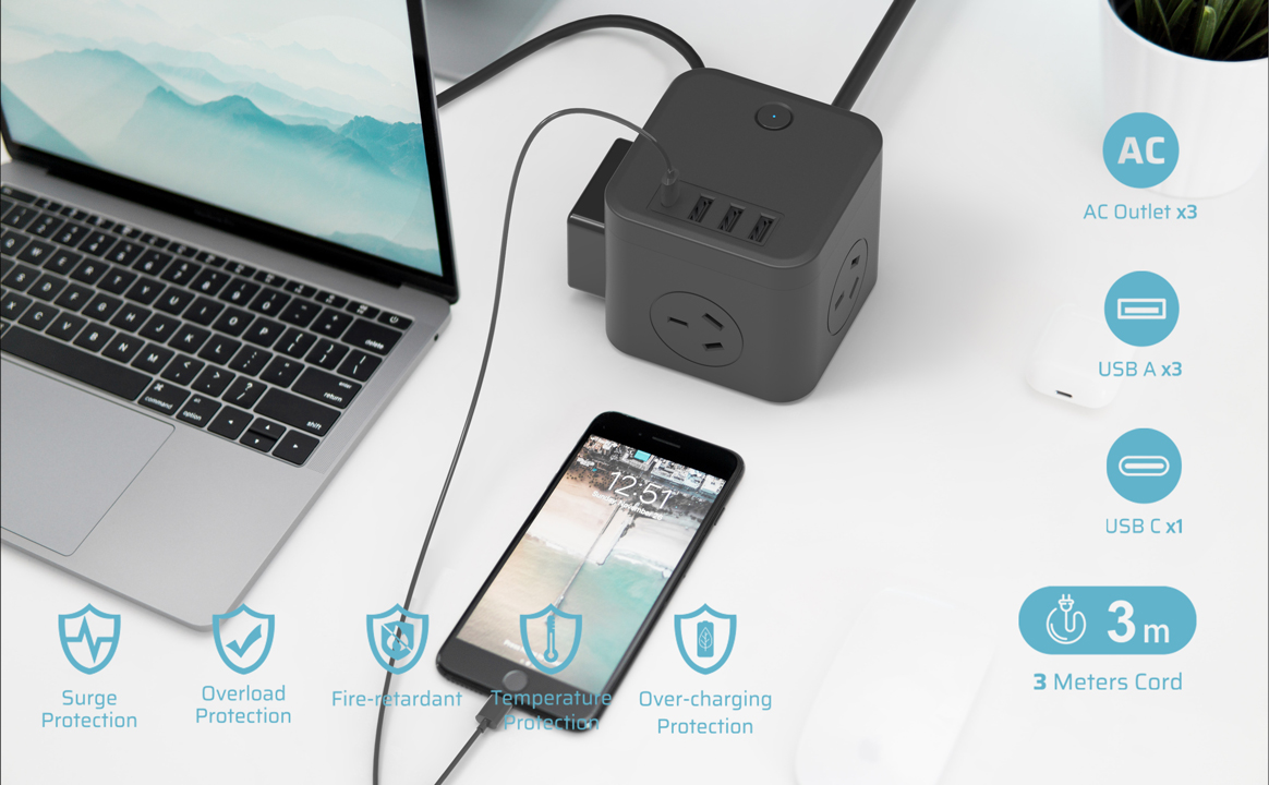 Experience the convenience of our smart USB Power Board, featuring 3 power outlets, 3 USB charging ports, and 1 USB-C charging port. This all-in-one power board is perfect for busy homes and offices, accommodating all your devices and appliances effortlessly. Experience the convenience of our smart USB Power Board, featuring 3 power outlets, 3 USB charging ports, and 1 USB-C charging port. This all-in-one power board is perfect for busy homes and offices, accommodating all your devices and appliances effortlessly.