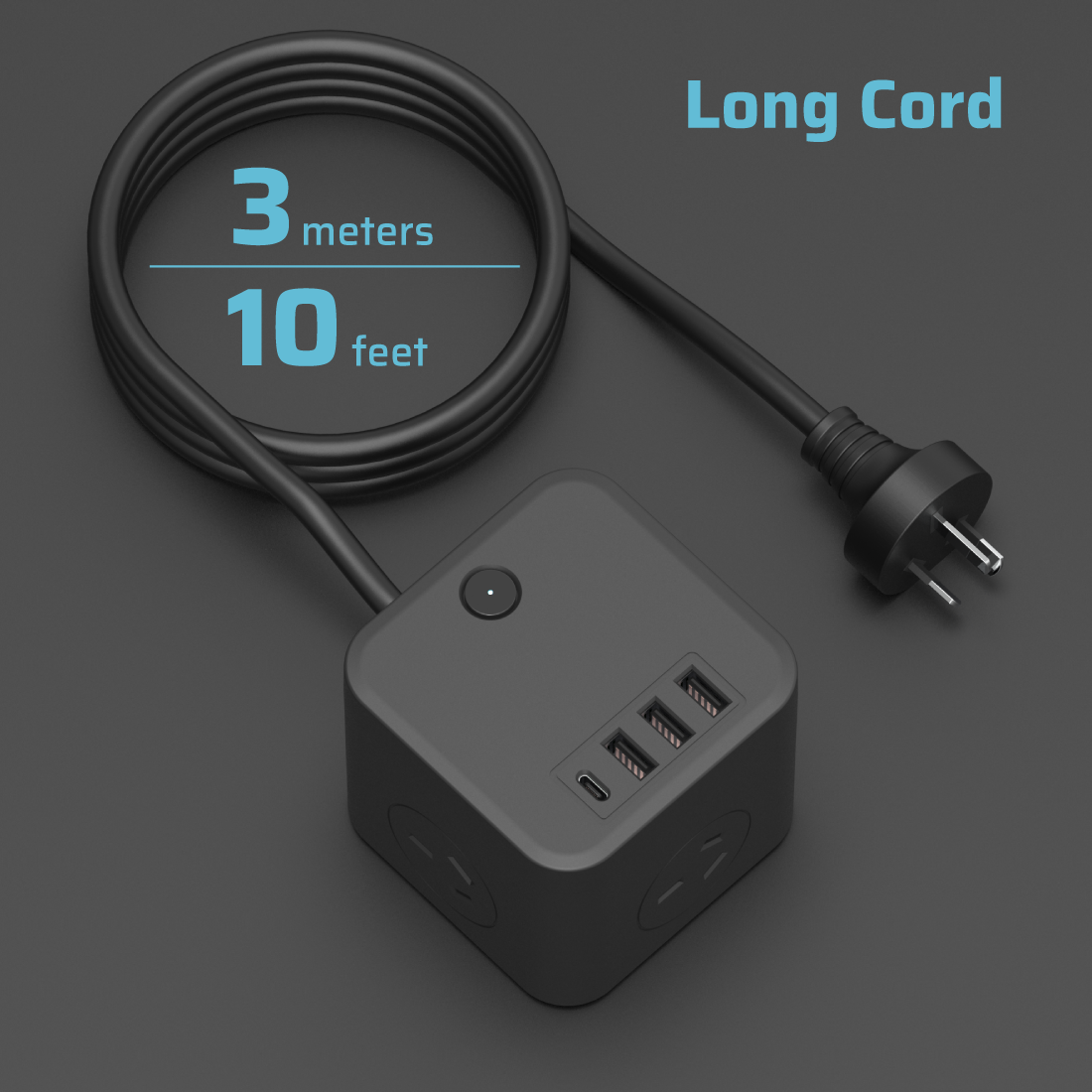 Rest assured knowing that our power strip surge protector has undergone rigorous testing and has obtained SAA certification. This means that it meets the safety and quality standards, providing you with peace of mind while powering your devices. Additionally, the generous 3-meter-long cord allows you to plug in your devices from any location with ease.
