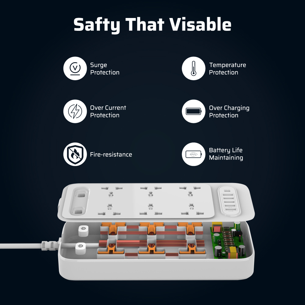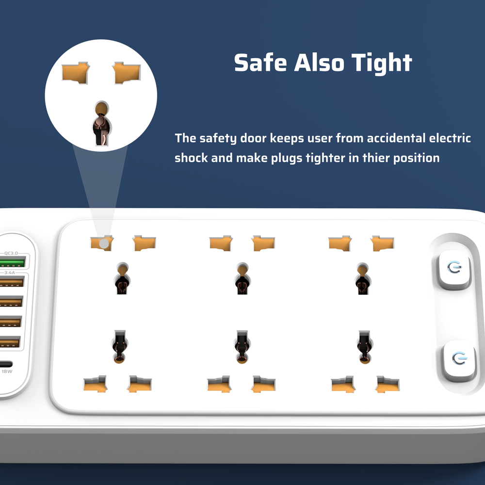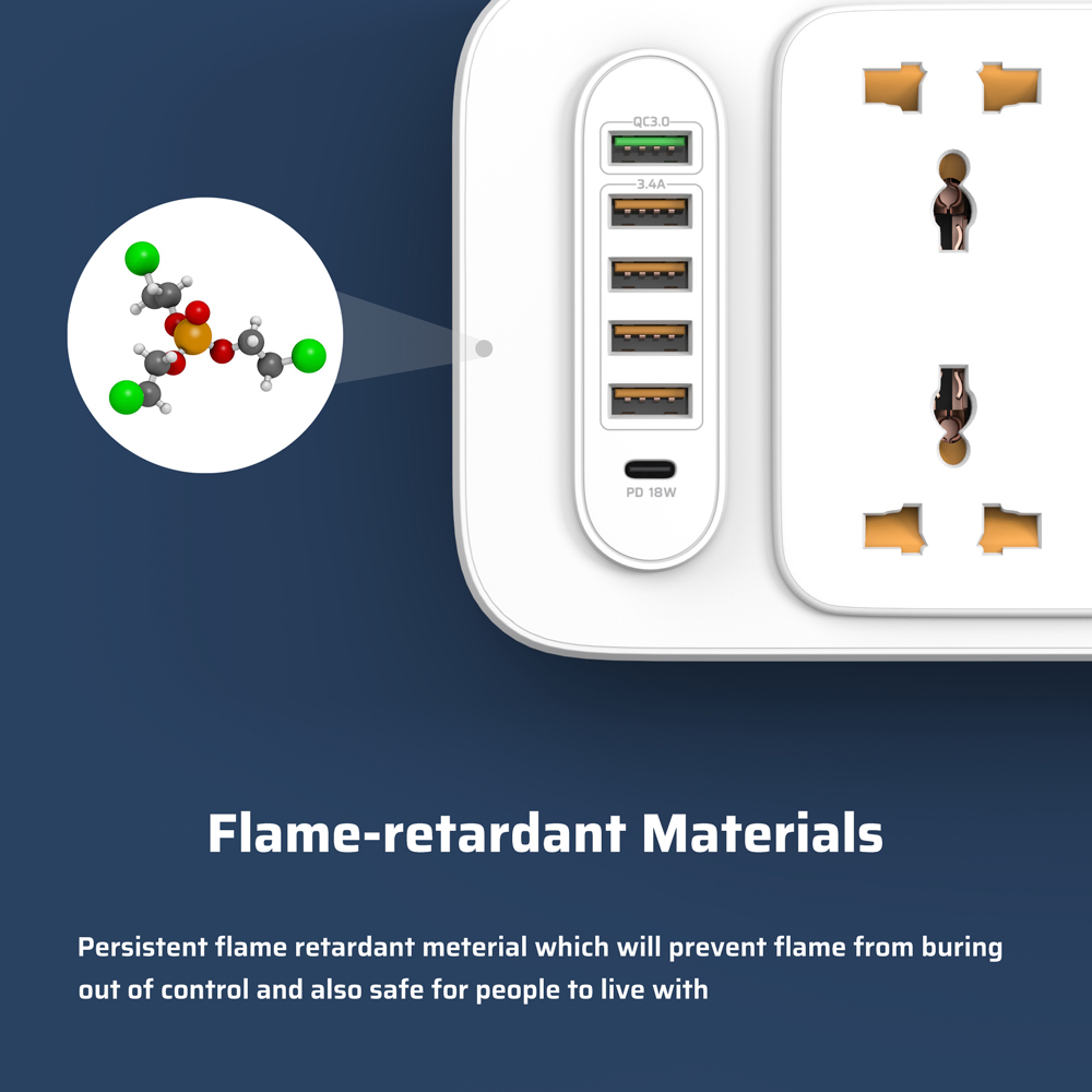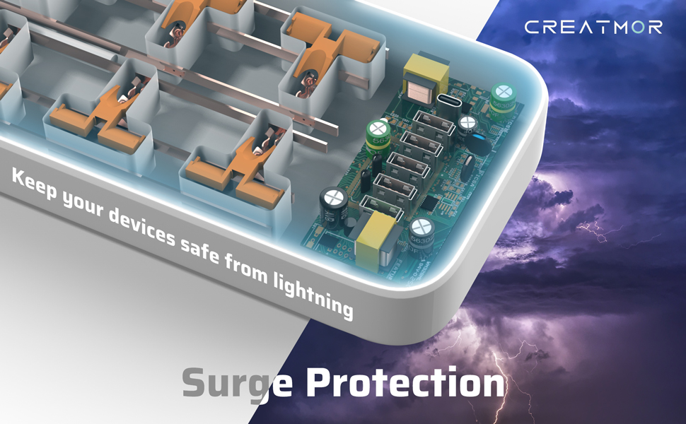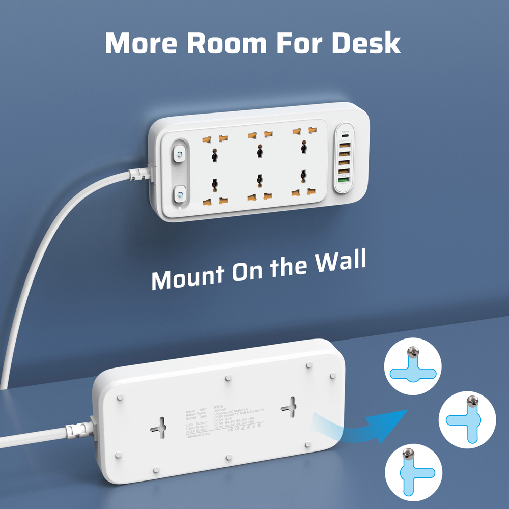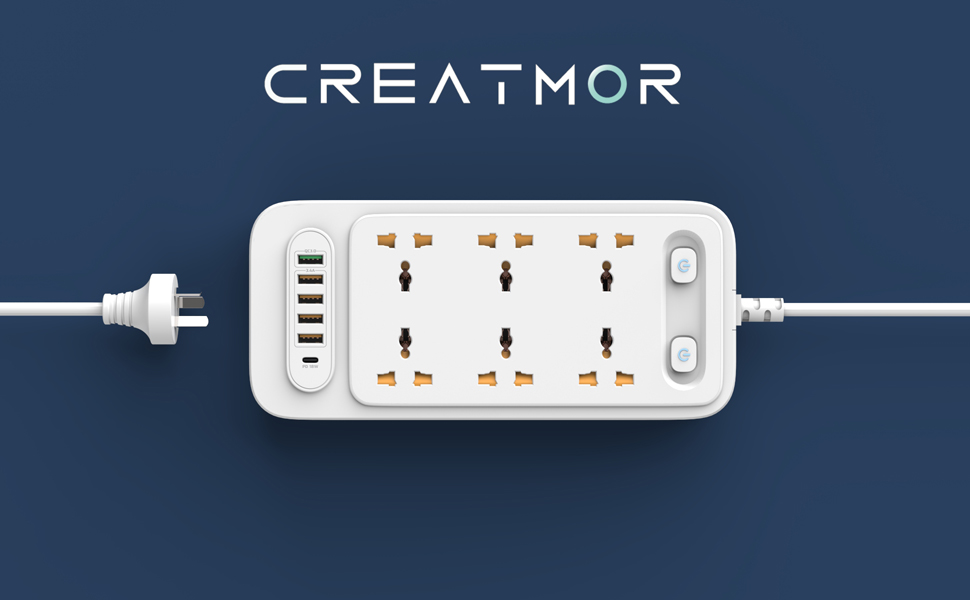 Intelligent circuitry with built-in power sensing detects the external load. The rocker switch can automatically shut off to keep your device safe. This flat power strip is also protected against over-voltage, over-current, overload, and short-circuiting. CREATMOR Power extension has a 2 mounting holes design that allows you to securely install this power strip.