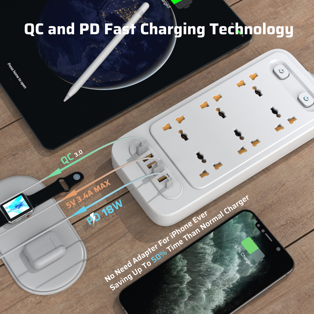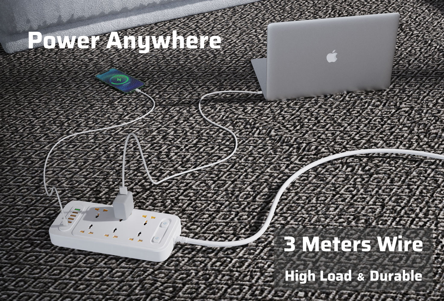 6 AC outlets with 3M Net Long Cable for larger spacing. CREATMOR Fast charging compatible with iPhone 12/11 / 11 Pro Max / XS Max / XS / XR / X / 8 Plus / 8. Samsung Galaxy S20+ / S20 / S10+ / S10 , iPad Pro 12.9’’ / iPad Pro 10.5’’ / iPad Pro 11’’/ iPad mini 7.9″, Google Pixelbook. Huawei MateBook X Pro / MateBook X / MateBook13; Samsung Notebook9(950XBE). Laptop: MacBook Pro(2020) / MacBook Pro 16″ &15″ / MacBook Air 12″ & 13″ / MacBook 12″ etc